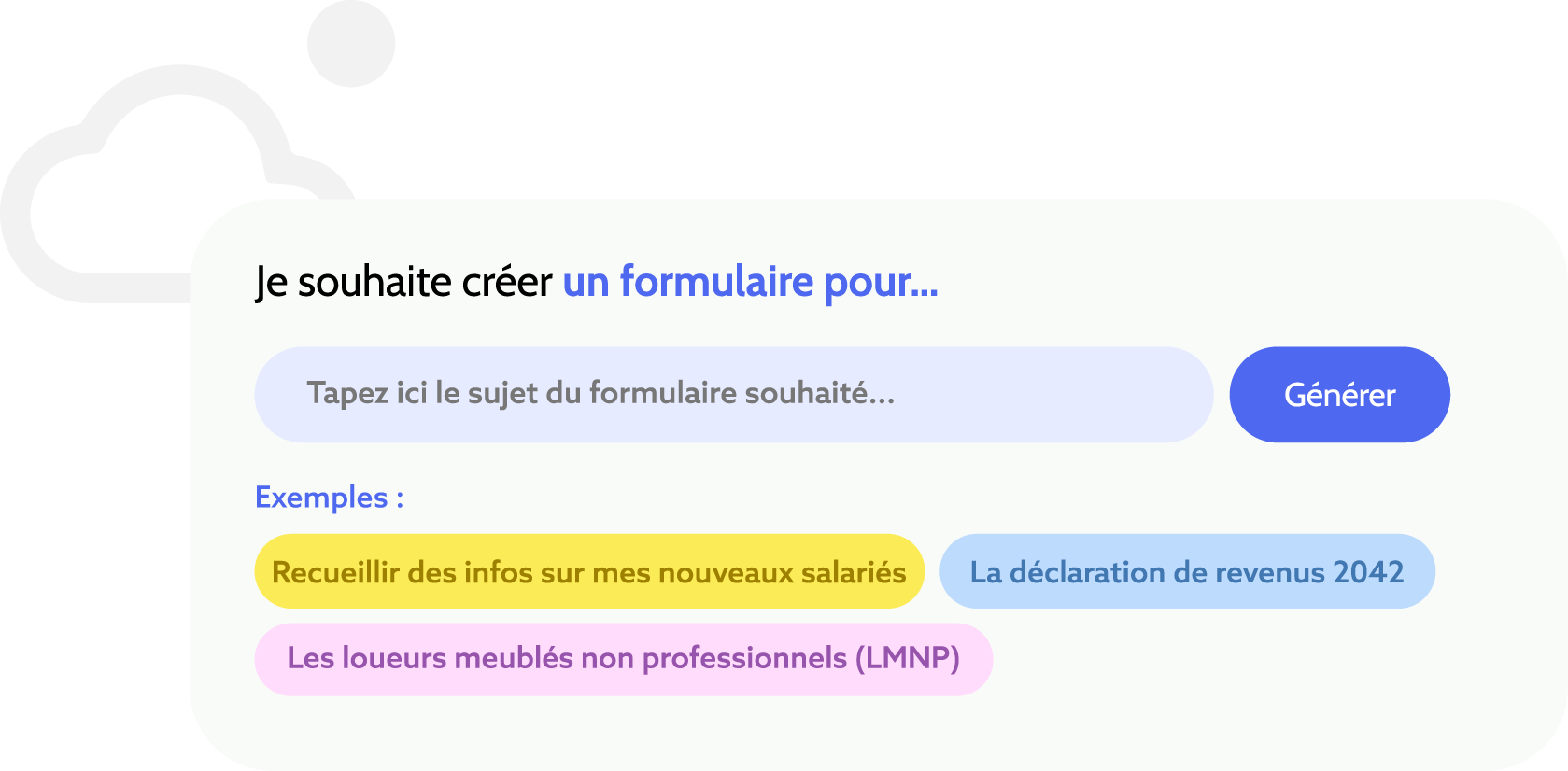 Construisez vos formulaires en quelques instants à partir de notre IA générative et de nos modèles… ou choisissez librement chaque élément de A à Z ! À vous de choisir !